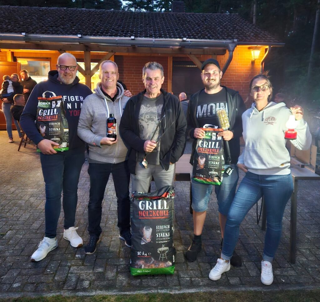 Bei leckerem Grillgut und Salaten versuchten 16 Schützen und Schützinnen ihr Glück auf die Spaßscheiben. Zu gewinnen gab es für die ersten 3 Plätze eine Grillzange und einen Sack Holzkohle. Dieser wurde von unserem König Niklas Grote und Vizekönig Ramon Münch gespendet. Vielen Dank dafür. Die rote Wanderlaterne ging dieses Jahr an Ivonne Giller.