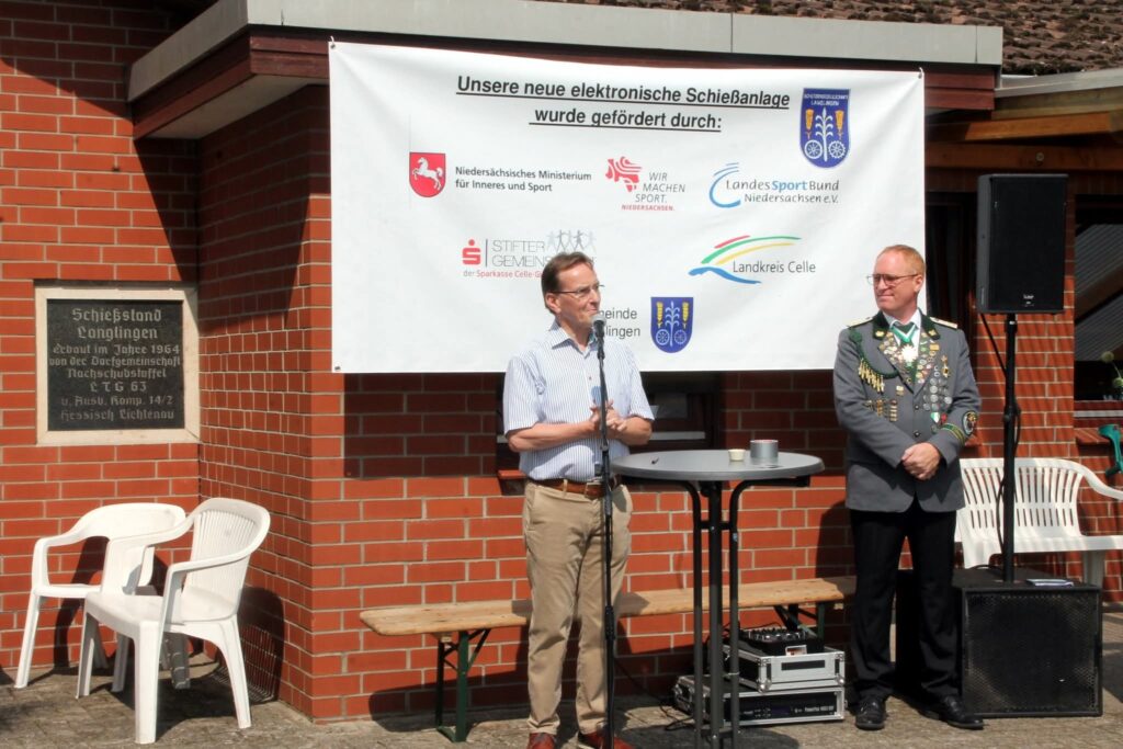 Wir,die Schützengesellschaft Langlingen von 1876 e.V., durften am Samstag den 09.08.2025, im Rahmen unseres „Open Day“ unsere neuen elektronischen Schießanlagen eierlich vorstellen! Unter den Ehrengästen durften wir Bürgermeister Enst-Ingolf Angermann, Tim Faß von der Sparkasse CE WOB, Mike Schönemann und Maren Gremmel vom KSV Celle begrüßen. Ein Herzliches Willkommen galt allen Freunden und Vereinsmitgliedern, die mit uns gefeiert haben. In den Letzen Monaten wurde hier mit viel Schweiß, Engagement und Herzblut gearbeitet. ohne die unermüdliche Unterstützung unserer Mitglieder, die unzählige Stunden investiert haben, wäre dieses beeindruckende Projekt nicht möglich gewesen. Ein großes Dankeschön an jeden Einzelnen von Euch! Ein ganz besonderer Dank geht auch an unsere Förderer, ohne die dieses 57.000€ Projekt nicht realisiert gewesen wäre: LSB Niedersachsen, Landkreis Celle, Gemeinde Langlingen und die Stiftergemeinschaft der Sparkassen. Mit dieser neuen Schießanlage beginnt für uns eine neue Ära! Sie ermöglicht nicht nur ein modernes und professionelleres Training, sondern macht unseren Sport besonders attraktiv für neue, vor allem jüngere Mitglieder. Die Kleinen waren fleißig Lichtpunktgewehr schießen, Blasrohr schoeßen oder auf der Hüpfburg. Zur musikalischen Unterhaltung hat uns der Spielmannszug Altencelle großartig begleitet – Danke dafür! Die Veranstaltung war ein voller Erfolg und wir freuen uns schon auf viele schöne Schießabende und gute Ergebnisse!